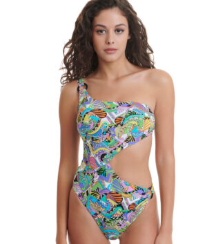 One shoulder cutout swimsuit. Removable sof pads. (82% Polyamide, 18% Elastan)