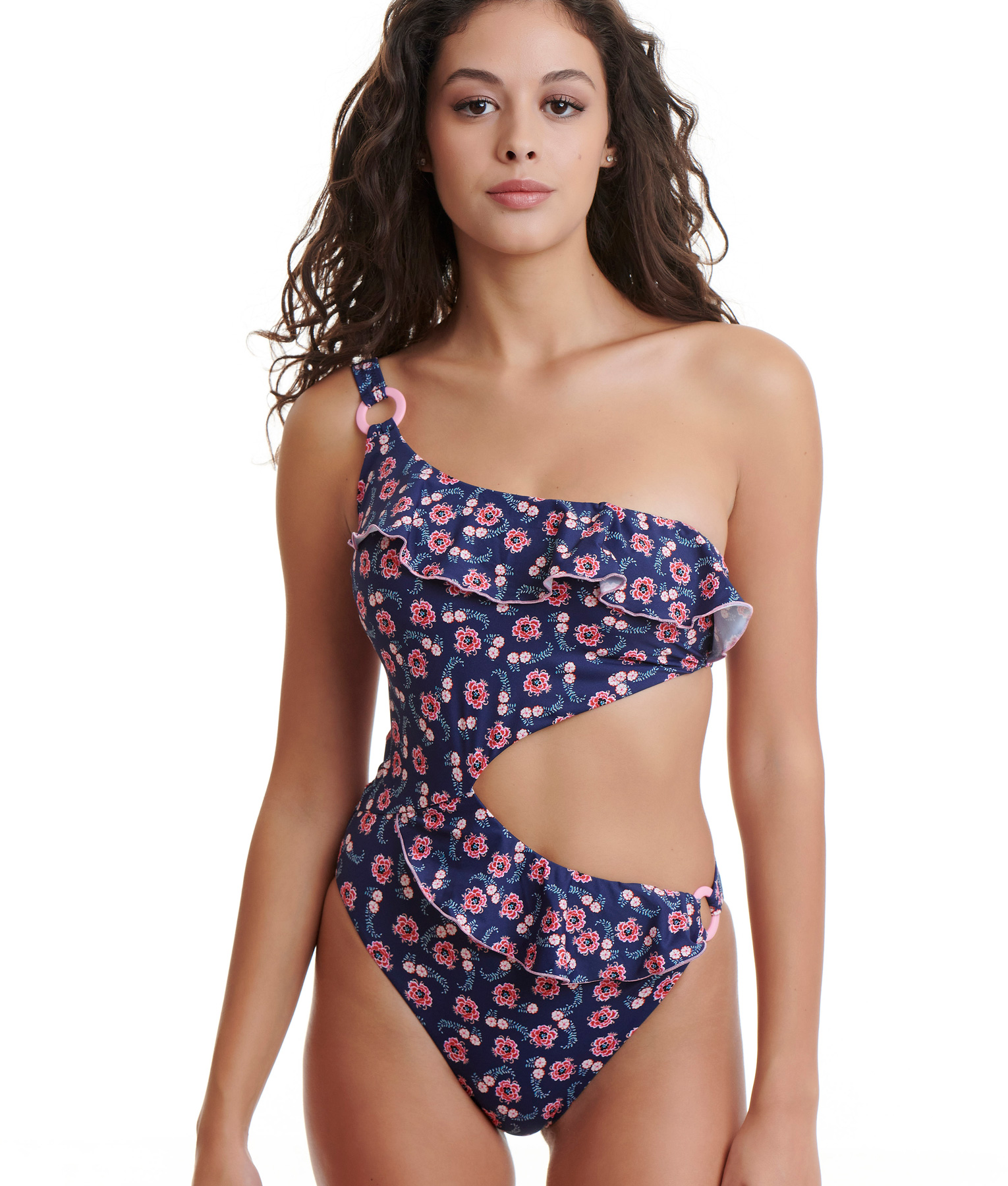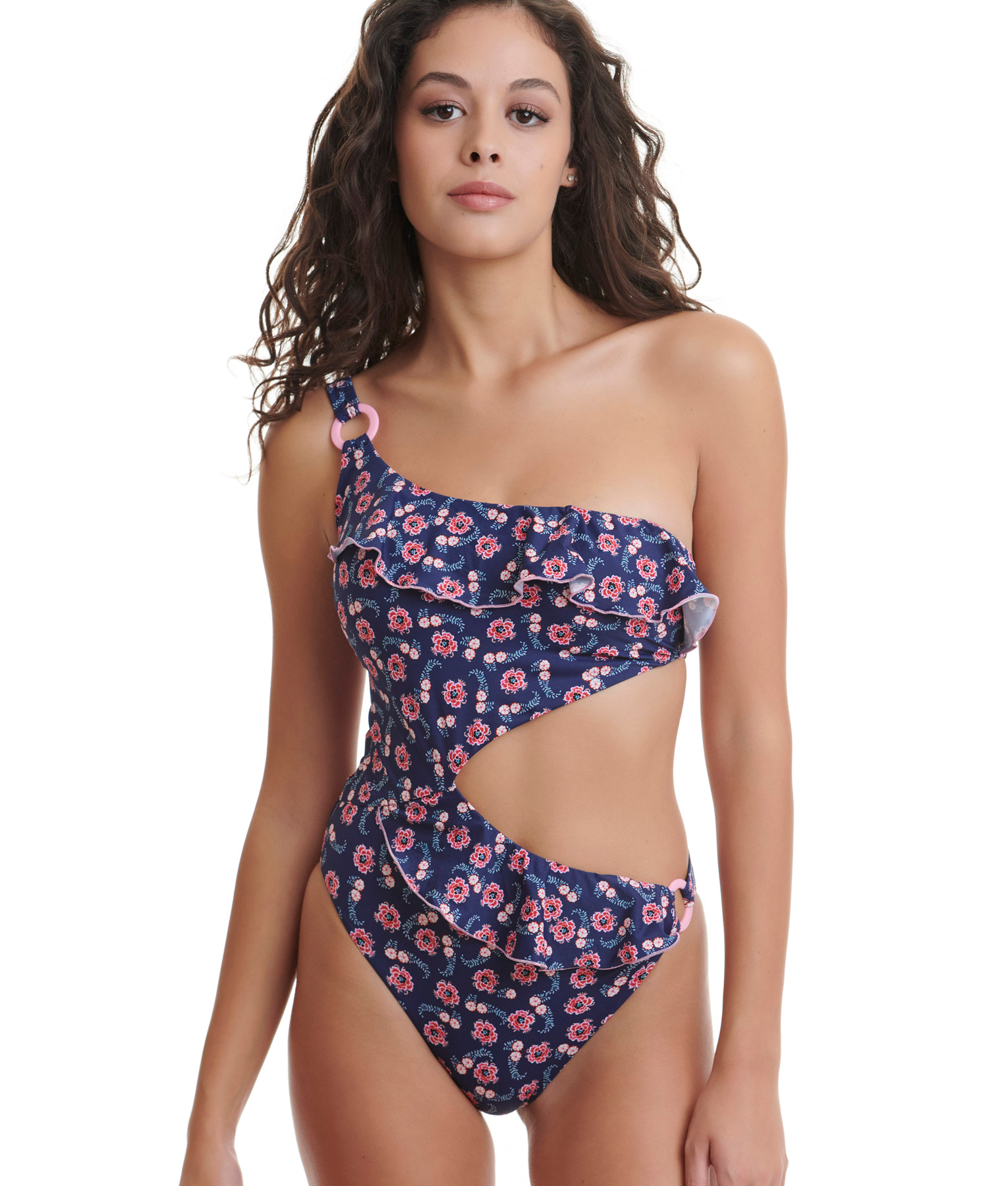 One shoulder cutout swimsuit. Removable sof pads. (82% Polyamide, 18% Elastan)