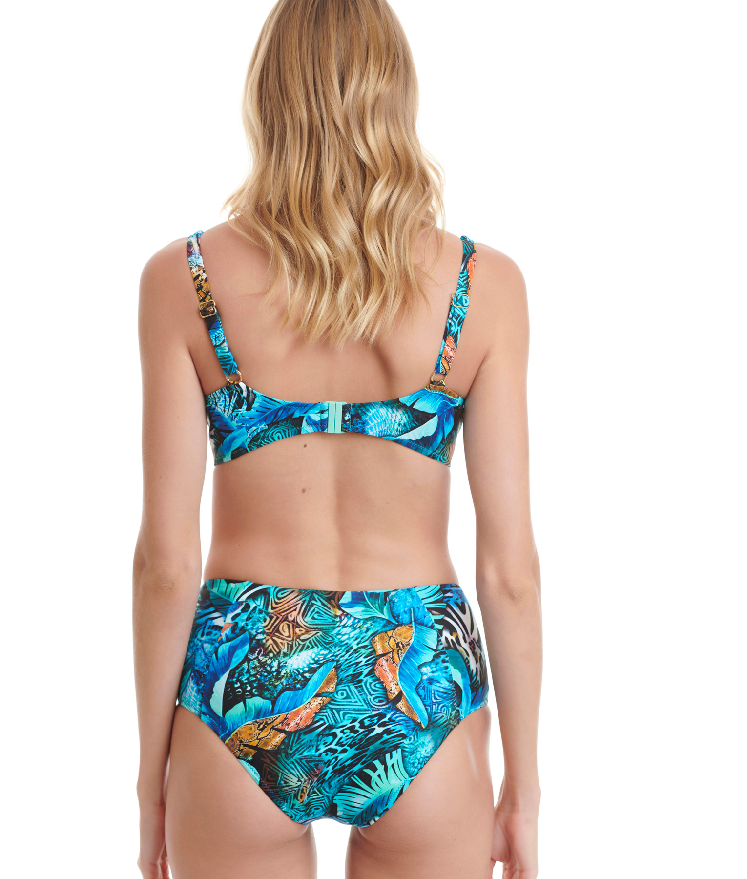 Μαγιό animal blue CUP D, ενισχυμένο, ρυθμιζόμενες τιράντες για τέλεια εφαρμογή, κούμπωμα στην πλάτη, με ψηλόμεσο σλιπ. (82% Πολυαμίδη, 18% Ελαστάνη)